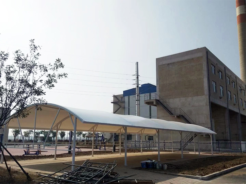 膜技术开发有限公司洽谈合作。此工程为辽宁省辽阳市辽阳县发电厂院内膜结构停车棚工程,我们采用的PVC膜材,运用方管和圆管的结合结构,制作的拱形膜结构停车棚案例 :